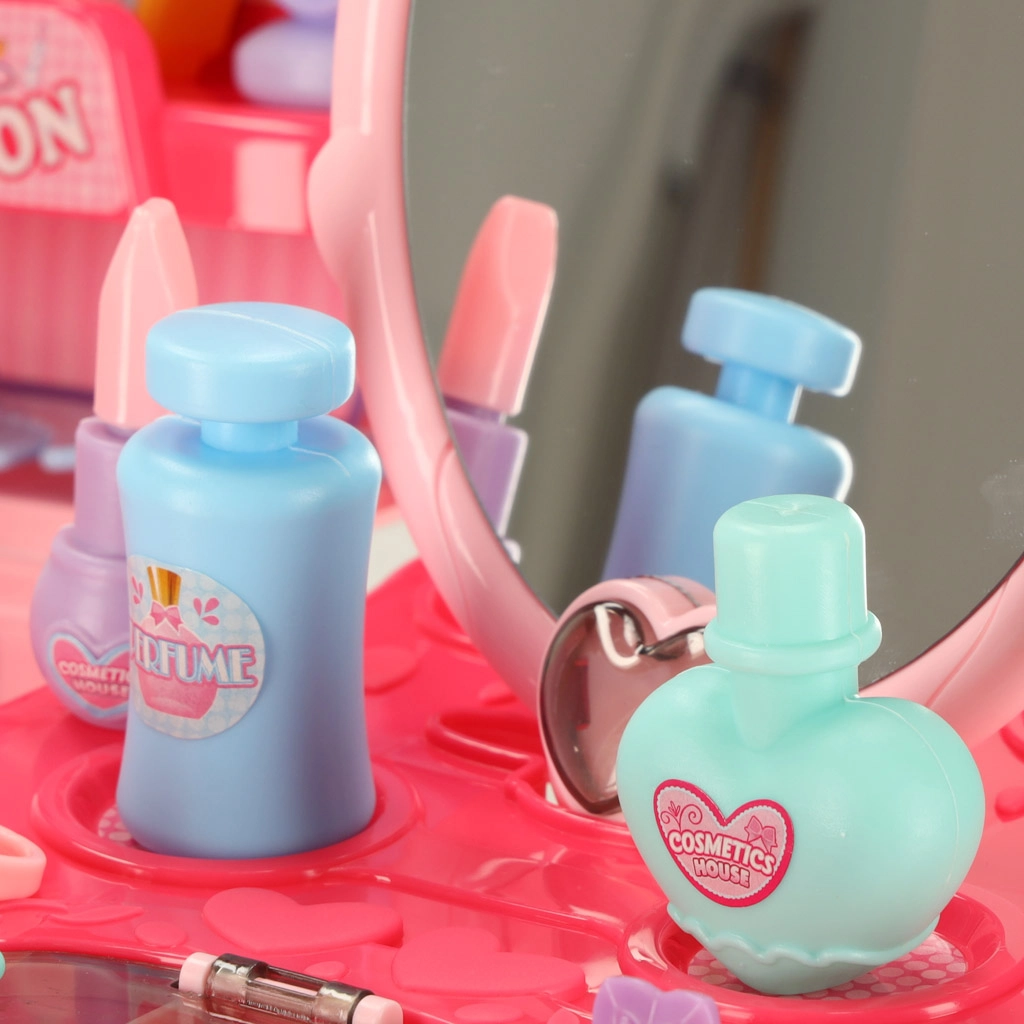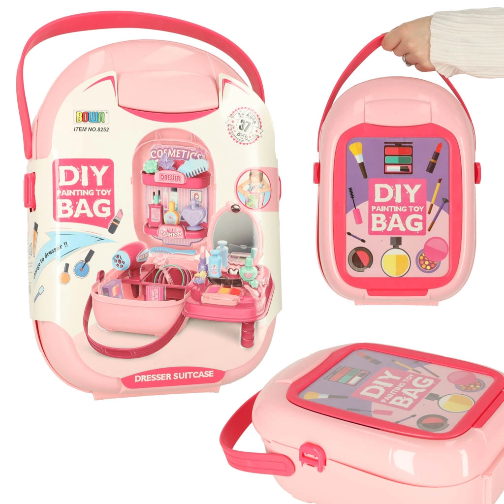 Ανακαλύψτε ένα μαγικό σαλόνι ομορφιάς κρυμμένο σε μια ελαφριά πλαστική κασετίνα με χερούλι. Τα παιδιά απολαμβάνουν παιχνίδι κομμωτηρίου και καλλυντικών, εξασκούν τη φαντασία και μαθαίνουν να φροντίζουν την εμφάνισή τους με ασφαλή, παιχνιδιάρικο τρόπο.