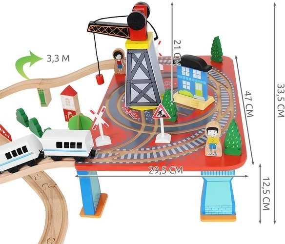 Υπέροχη ξύλινη σιδηροδρομική πίστα με τρένα μπαταρίας και 88 κομμάτια, που αναπτύσσουν την δημιουργικότητα και τον συντονισμό. Περιλαμβάνει μαγνητικά συνδετικά στοιχεία για εύκολη συναρμολόγηση.