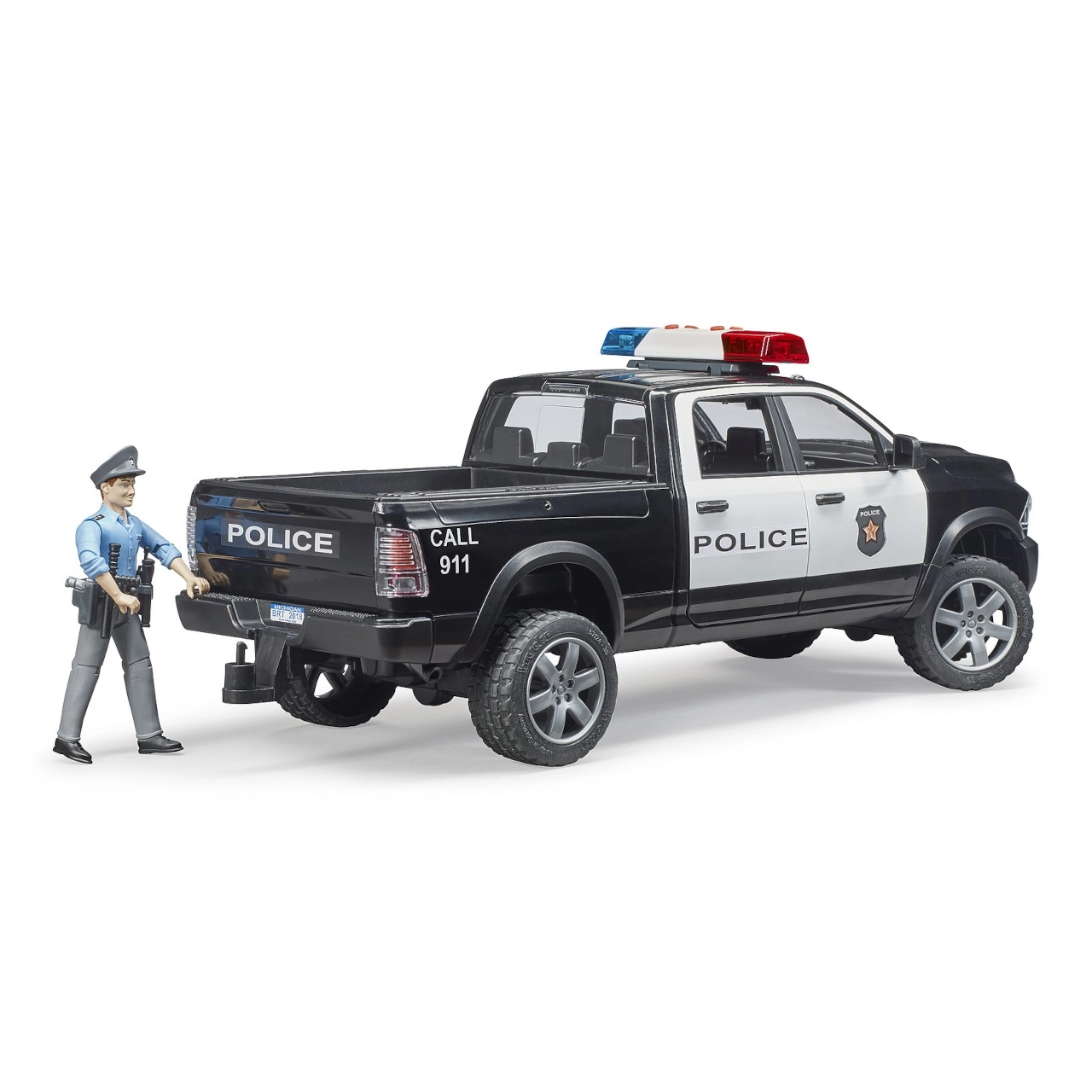 Το αστυνομικό pick-up BRUDER RAM προσφέρει στα παιδιά αυθεντική δράση και πολλές δυνατότητες παιχνιδιού. Χάρη στη στιβαρή κατασκευή από ποιοτικό πλαστικό ABS, τα ρεαλιστικά στοιχεία και τις λειτουργικές λεπτομέρειες, αντεπεξέρχεται σε κάθε αποστολή – από περιπολίες στην πόλη μέχρι επιχειρήσεις σε δάση ή βουνά.