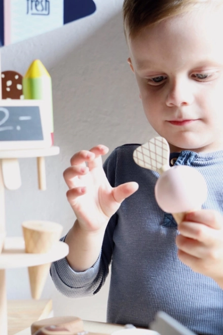 Η ξύλινη βάση για παγωτό Fresh είναι το ιδανικό παιχνίδι για μικρούς πωλητές. Προσφέρει ποικίλες λιχουδιές παγωτού και ένα μαγνητικό σκουπιδάκι σερβιρίσματος που εξασφαλίζει ασφαλή και εύκολο χειρισμό. Με την φυσική της όψη ενθαρρύνει το δημιουργικό παιχνίδι.