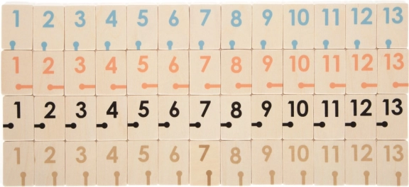 Τα στιβαρά ξύλινα πλακίδια με αριθμητική εκτύπωση και σύμβολα είναι ευδιάκριτα και ευχάριστα στην αφή. Τη σταθερότητα και την ιδιωτικότητα κατά τον σχηματισμό συνδυασμών εξασφαλίζουν οι ελαφρώς καμπύλες ξύλινες βάσεις. Το παιχνίδι καλλιεργεί το λογικό μυαλό, τη στρατηγική και τη συγκέντρωση παικτών όλων των ηλικιών.