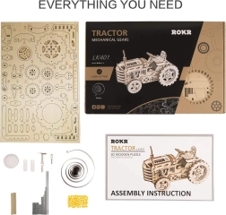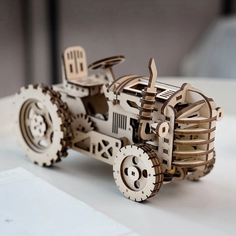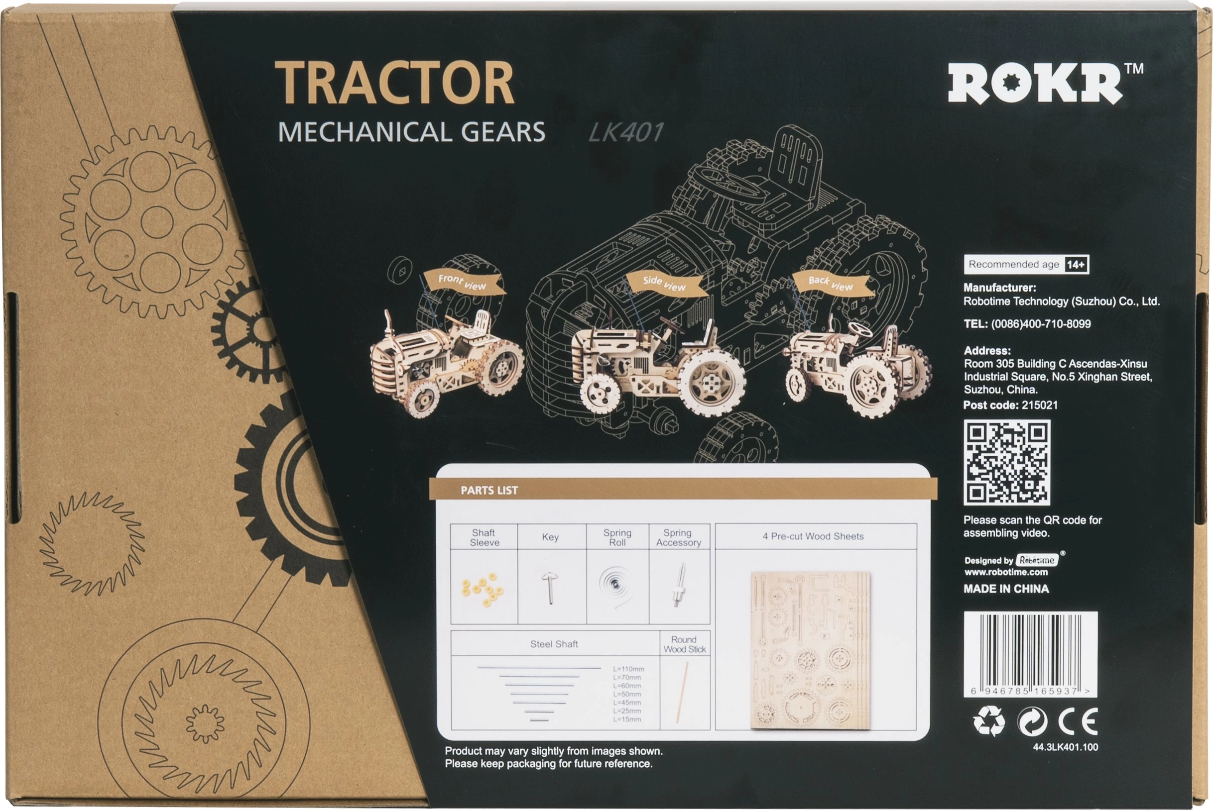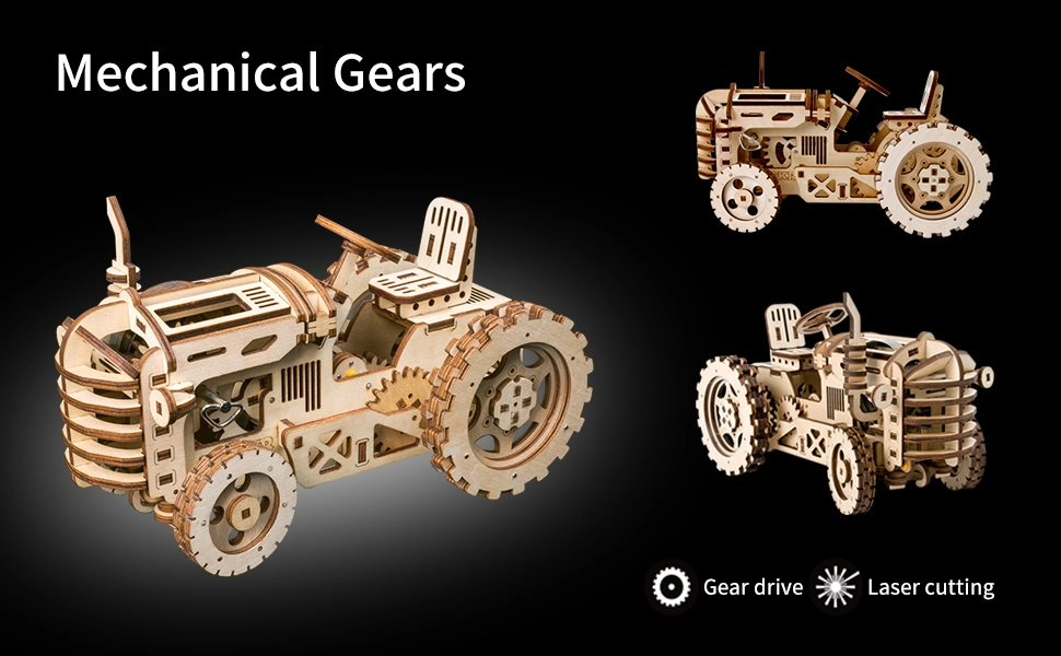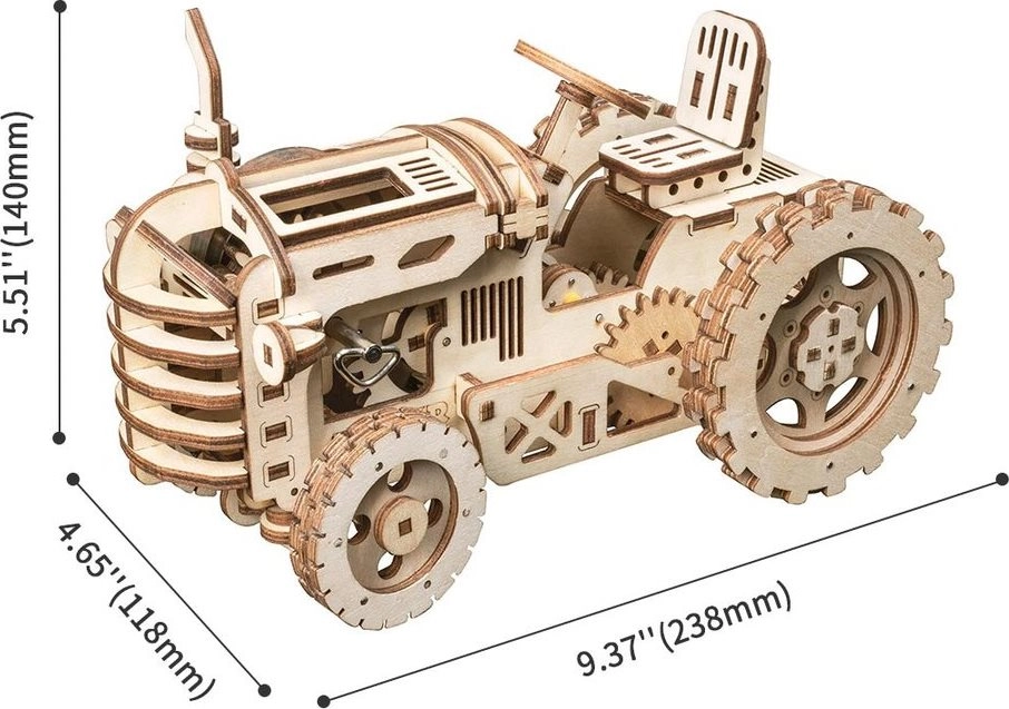 Η ROBOTIME Rokr προσφέρει ένα συναρπαστικό ξύλινο 3D παζλ τρακτέρ με ρεαλιστικές λεπτομέρειες. Αυτό το μηχανικό μοντέλο δεν χρειάζεται μπαταρίες· απλώς κουρδίστε τον μηχανισμό με το κλειδί και δείτε το να ζωντανεύει. Με την περιστροφή του τιμονιού μπορείτε να αλλάξετε την κατεύθυνση κίνησης των μπροστινών τροχών, προσθέτοντας διαδραστικότητα.
