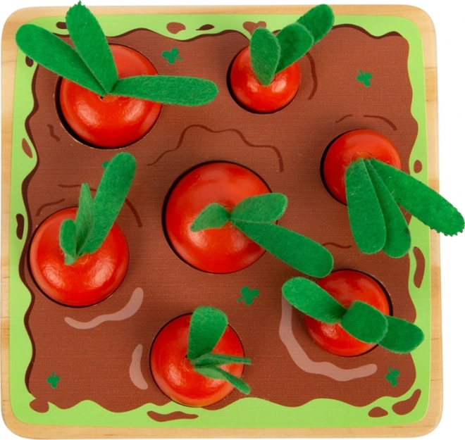 Η έμπνευση από τη μέθοδο Montessori προσφέρει στα παιδιά τη δυνατότητα να μαθαίνουν με διασκεδαστικό τρόπο. Το παιχνίδι τοποθέτησης και ταξινόμησης περιλαμβάνει επτά καρότα διαφορετικών μεγεθών, τα οποία τα παιδιά με σύγκριση τοποθετούν στις σωστές οπές στη βάση. Αυτό το σετ παιχνιδιού βοηθά να αναπτυχθεί η λεπτή κινητικότητα, η κατανόηση των μεγεθών και η παρατηρητικότητα. Επιπλέον, χάρη στον ρεαλιστικό σχεδιασμό των πράσινων τσόχνινων μερών, ενισχύει το παιχνίδι ρόλων και τη φαντασία των μικρών κηπουρών.
