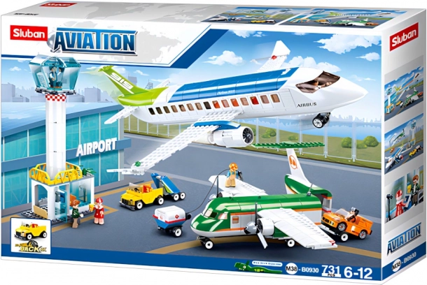 Ανακαλύψτε το μεγάλο κατασκευαστικό σετ αεροδρομίου της Sluban με δύο αεροπλάνα, πύργο ελέγχου, οχήματα και 6 φιγούρες. Σας περιμένουν 731 κομμάτια, μεσαία δυσκολία, συμβατότητα με LEGO και άλλες μάρκες και ανθεκτικό πλαστικό ABS για μεγάλη αντοχή.