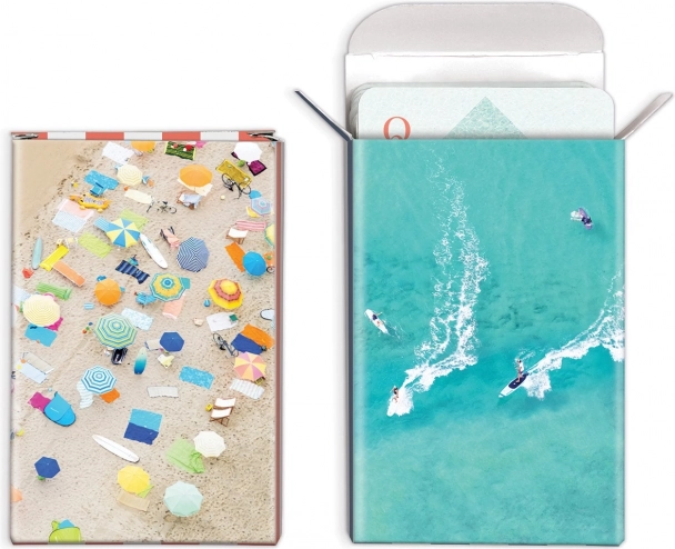 Απολαύστε μια μοναδική εμπειρία παιχνιδιού με αυτό το στιλάτο σετ, που συνδυάζει τα κλασικά στοιχεία τράπουλας με γοητευτικές αεροφωτογραφίες παραλιών. Το σετ περιλαμβάνει δύο τράπουλες με 54 κάρτες η καθεμία, συνολικά 108 κάρτες.