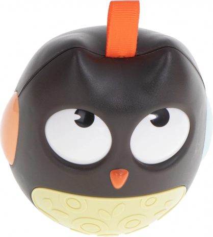 Οι έντονες αντιθέσεις, τα μεγάλα κινούμενα μάτια και ο απαλός ήχος από τα εσωτερικά κουδουνάκια τραβούν φυσικά την προσοχή. Οι διαφορετικές υφές στην επιφάνεια και ο πρακτικός επάνω ιμάντας αναπτύσσουν τη λεπτή κινητικότητα και την απτική αντίληψη.