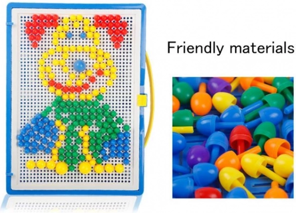 Αυτό το παιχνίδι είναι αγαπημένο από γενιές παιδιών και προκαλεί νοσταλγία στους ενήλικες. Απλή κατασκευή που αποτελείται από πολύχρωμα πλαστικά καρφάκια διαφόρων μεγεθών και μια διάτρητη βάση για την τοποθέτησή τους. Όλα φυλάσσονται σε πρακτικό βαλιτσάκι, ώστε το παιδί σας να μπορεί να πάρει το αγαπημένο του παιχνίδι παντού.