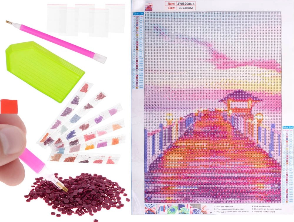 Το σετ περιλαμβάνει όλα τα αξεσουάρ που χρειάζεστε για να δημιουργήσετε ένα μοναδικό διαμαντένιο έργο από την άνεση του σπιτιού σας.