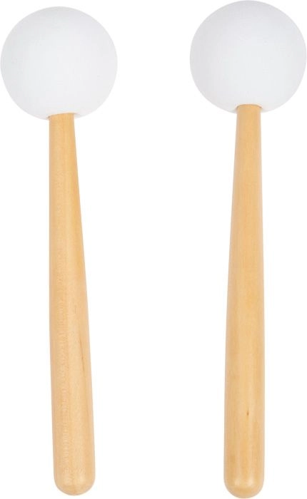 Δύο μπαγκέτες με λευκές σφαιρικές κεφαλές προσφέρουν μαλακό, καθαρό τόνο, φιλικό στα παιδικά αυτιά και ενθαρρύνουν μεγαλύτερη διάρκεια παιχνιδιού χωρίς θόρυβο.