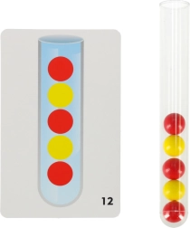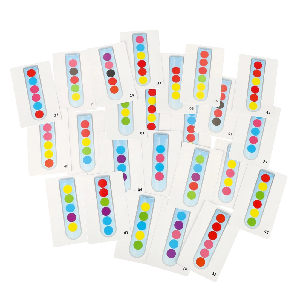 Περιλαμβάνει 24 διπλής όψης κάρτες που δείχνουν διάφορα μοτίβα για αναπαραγωγή μέσα στον δοκιμαστικό σωλήνα. Αυτές οι δραστηριότητες βοηθούν στην ανάπτυξη της σκέψης και της ικανότητας συγκέντρωσης των παιδιών.