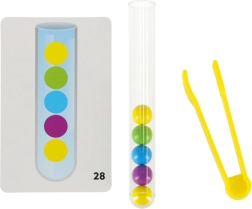 Ανακαλύψτε έναν διασκεδαστικό και διαδραστικό τρόπο για να ενισχύσετε τις δεξιότητες του παιδιού σας με αυτό το μεγάλο εκπαιδευτικό σετ. Το παιχνίδι επικεντρώνεται στην ταξινόμηση των μπιλιών στους σωστούς δοκιμαστικούς σωλήνες με τα χέρια ή με τις παρεχόμενες τσιμπίδες.