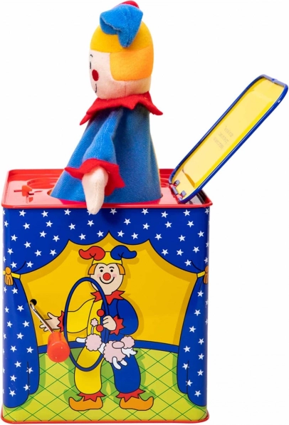 Αυτό το μουσικό κουτί με κλόουν ξεχωρίζει για τη γραφική τσίρκου και την ανθεκτική κατασκευή του, που υπόσχεται διασκέδαση μεγάλης διάρκειας. Με το γύρισμα της μανιβέλας ακούγεται μια μελωδία, που φέρνει χαμόγελο σε κάθε παιδικό πρόσωπο.