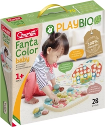 Το μωσαϊκό Quercetti FantaColor Baby ανήκει στη σειρά PlayBio, που σημαίνει ότι είναι κατασκευασμένο από 100% ανακυκλωμένα υλικά, οικολογικά και φιλικά προς τη φύση. Περιλαμβάνει 28 κομμάτια, συμπεριλαμβανομένης διάτρητης βάσης και 21 πολύχρωμων καρφιτσών που εφαρμόζουν εύκολα στη θέση τους. Το παιχνίδι με αυτό το μωσαϊκό υποστηρίζει: