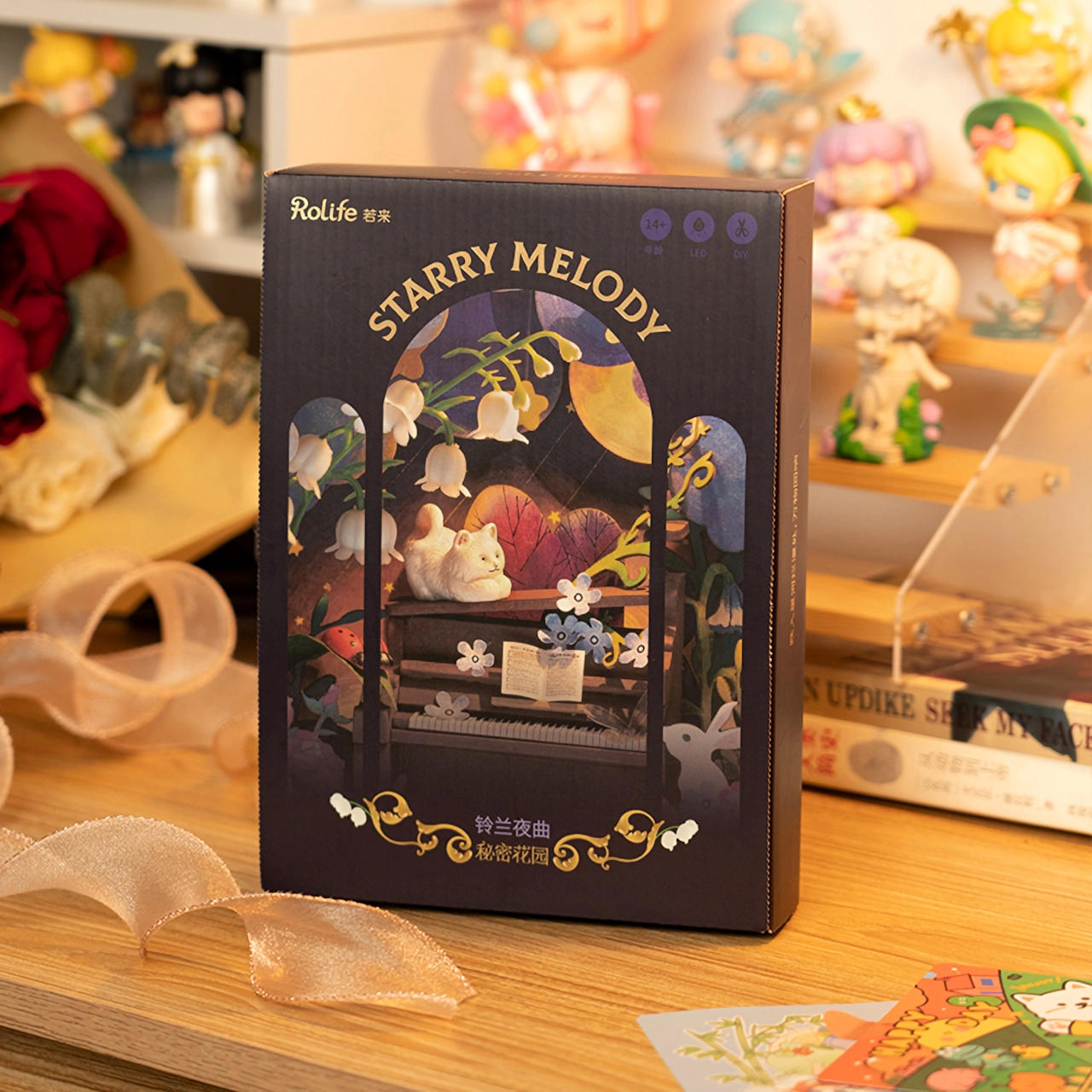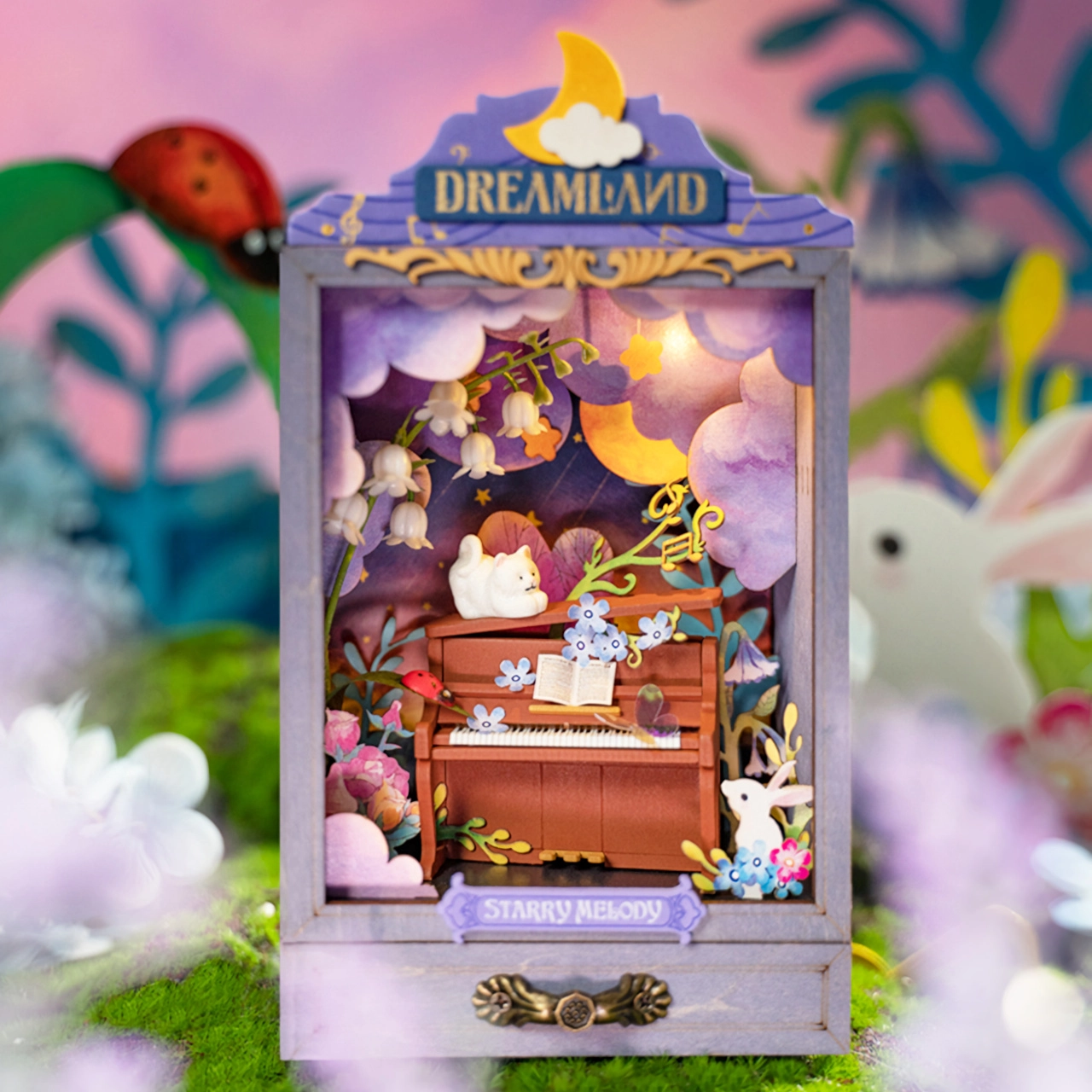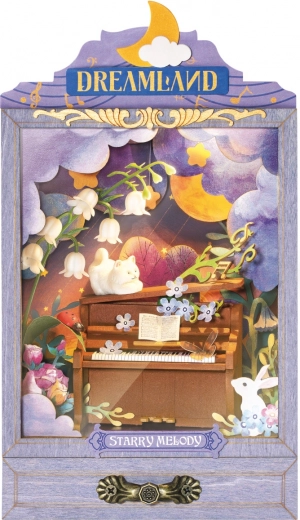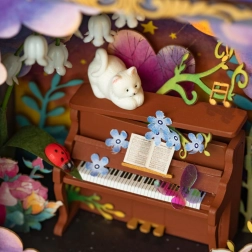Αυτό το γοητευτικό μινιατούρικο διοράμα σάς επιτρέπει να βυθιστείτε σε έναν κόσμο φαντασίας. Στο εσωτερικό της βιτρίνας υπάρχει ζεστός φωτισμός που δημιουργεί μια μαγική αίσθηση βάθους στη σκηνή. Μια πρακτική θήκη στο κάτω μέρος της βιτρίνας επιτρέπει την αποθήκευση μικρών αντικειμένων. Η συναρμολόγηση περιλαμβάνει εργασία με κομμάτια από κόντρα πλακέ και χαρτόνι, τα οποία προετοιμάζετε εύκολα. Τα ηλεκτρικά εξαρτήματα είναι ήδη προ-συναρμολογημένα, διευκολύνοντας την εγκατάσταση. Αρκεί να έχετε μόνο ψαλίδι, καθώς τα υπόλοιπα εργαλεία περιλαμβάνονται στη συσκευασία.