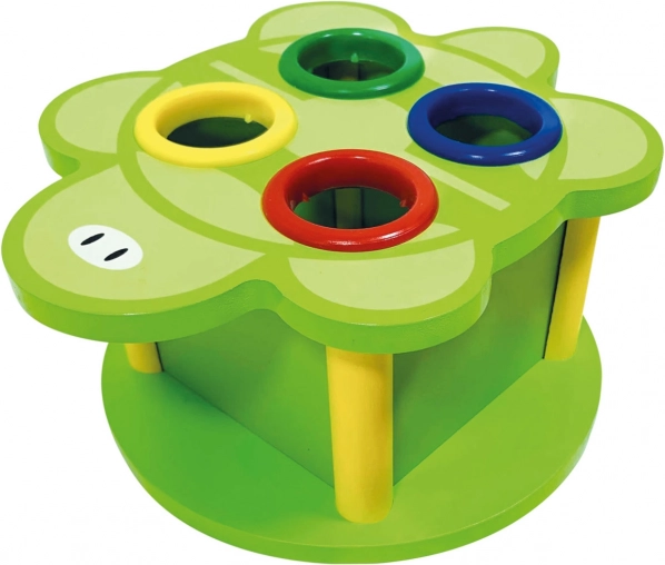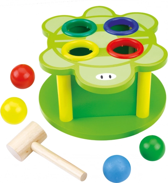 Το παιδικό ξύλινο σφυράκι χελώνα Bino προσφέρει χαρά στην ανακάλυψη και τη μάθηση. Καθεμία από τις 4 χρωματιστές μπαλίτσες ανήκει στο αντίστοιχο άνοιγμα, ώστε τα παιδιά να εξασκούν φυσικά την αναγνώριση χρωμάτων και τη λογική σκέψη. Η στιβαρή κατασκευή από μασίφ ξύλο εξασφαλίζει σταθερότητα και μεγάλη αντοχή.