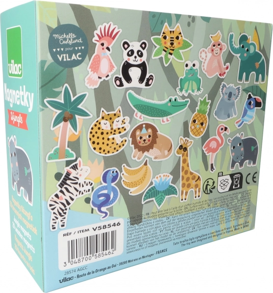 Στη ζούγκλα με τα μαγνητάκια Vilac. Ανακαλύψτε ένα χαρούμενο σετ ξύλινων μαγνητών με πρωτότυπες εικονογραφήσεις της Michelle Carlslund. Ιδανικό για διακόσμηση παιδικών δωματίων ή κουζινών.