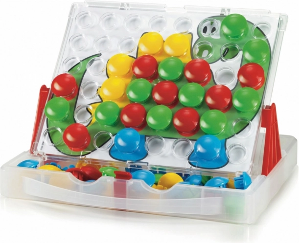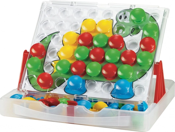 Το μωσαϊκό σε πρακτικό βαλιτσάκι επιτρέπει στα παιδιά να δημιουργούν χαρούμενες εικόνες σύμφωνα με τα παρεχόμενα πρότυπα ή με βάση τη δική τους φαντασία. Η βάση μπορεί να τοποθετηθεί στις υποδοχές και να χρησιμοποιηθεί και σε κάθετη θέση για ακόμη πιο άνετο παιχνίδι. Τα μεγάλα, πολύχρωμα καρφάκια είναι ασφαλή και εύκολα στον χειρισμό ακόμη και για τα μικρά παιδικά χέρια.