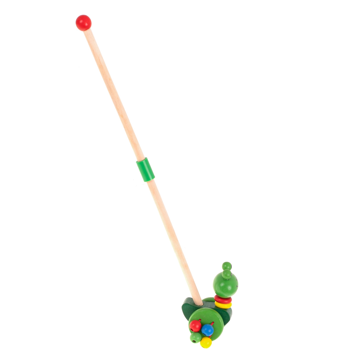 Ένας χαριτωμένος ξύλινος βάτραχος με ροδάκια, που μπορεί να οδηγείται με αφαιρούμενο κοντάρι, είναι ιδανικό παιχνίδι για παιδιά που τώρα μαθαίνουν να περπατούν. Αυτό το παιχνίδι όχι μόνο τα ενθαρρύνει να κάνουν βόλτες, αλλά επίσης αναπτύσσει τον συντονισμό και την ισορροπία τους.