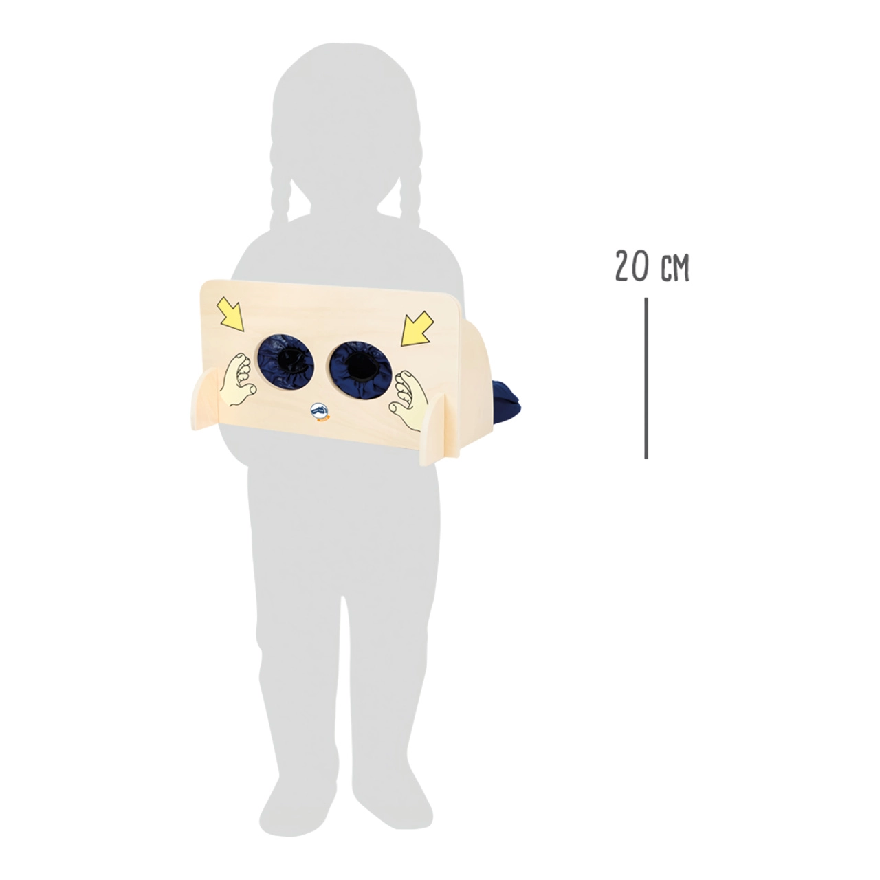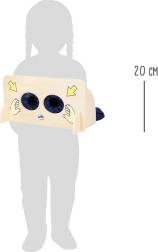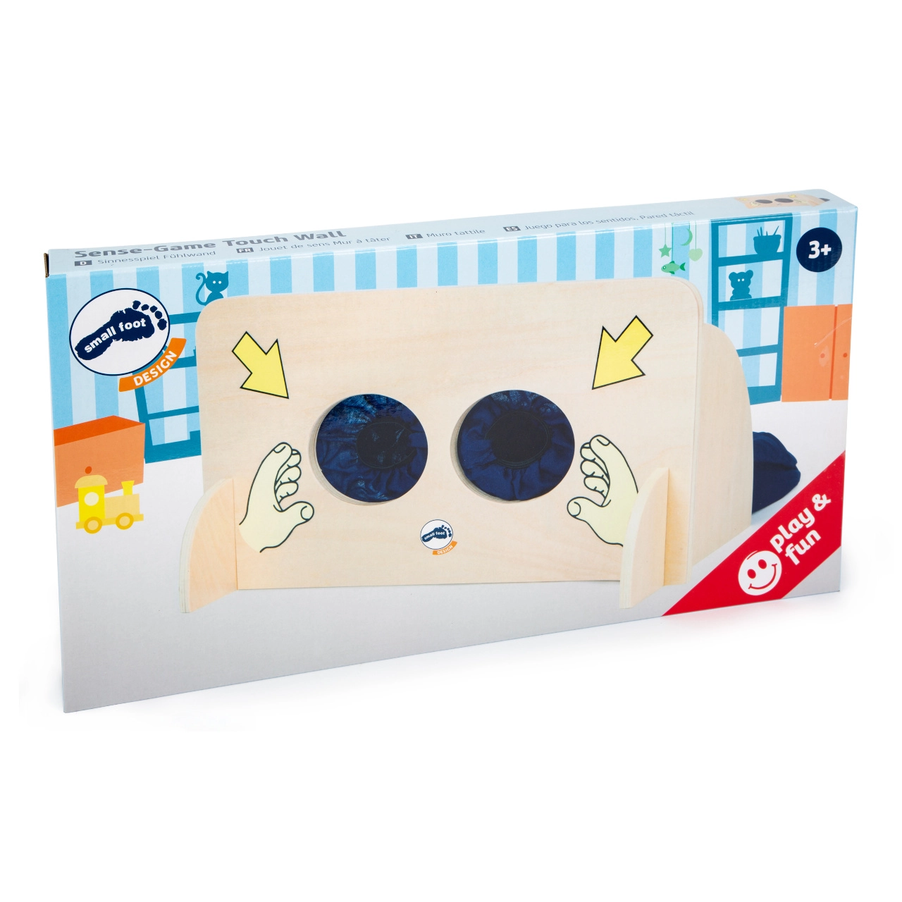 Η απτική επιφάνεια Small Foot Sense-Game προσφέρει στα παιδιά έναν ασφαλή και διασκεδαστικό τρόπο να εξασκούν την αισθητηριακή τους αντίληψη. Πίσω από την ξύλινη επιφάνεια υπάρχει υφασμάτινο πουγκί με φερμουάρ, στο οποίο μπορούν να τοποθετηθούν εύκολα διάφορα αντικείμενα. Τα παιδιά βάζουν τα χέρια τους στα μαλακά υφασμάτινα μανίκια και μαντεύουν μόνο με την αφή τι κρατούν.