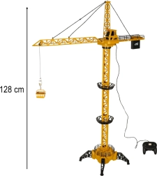 Τηλεκατευθυνόμενος οικοδομικός γερανός που θα ενθουσιάσει τους μικρούς κατασκευαστές με ρεαλιστικές λειτουργίες και ώρες διασκέδασης. Με ύψος έως 128 cm, περιστρεφόμενο πύργο και λειτουργικό γάντζο, σηκώνει και κατεβάζει εύκολα το φορτίο με το παρεχόμενο τηλεχειριστήριο. Το παιχνίδι απογειώνουν τα φωτεινά και ηχητικά εφέ, ενώ η συναρμολόγηση γίνεται εύκολα στο σπίτι.