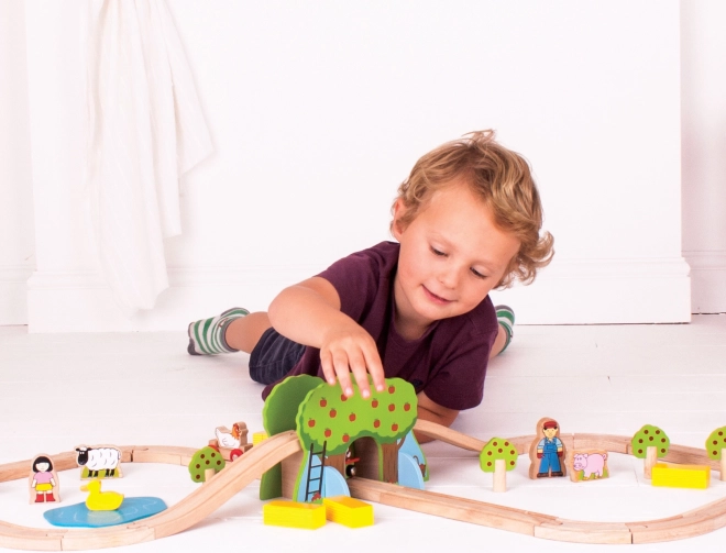 Αυτή η όμορφη ξύλινη σιδηροδρομική γραμμή με θέμα τη φάρμα από τη Bigjigs Rail περιλαμβάνει 45 κομμάτια και περιέχει φιγούρες ανθρώπων, ζώα και δέντρα. Ενισχύει τη φαντασία και τον συντονισμό και είναι κατασκευασμένη από υπεύθυνα προερχόμενα φυσικά υλικά.