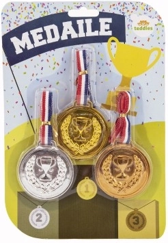 Στη συσκευασία μας θα βρείτε τρία πλαστικά μετάλλια, που είναι ιδανικά για παιδικούς διαγωνισμούς και παιχνίδια: