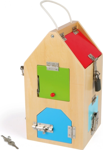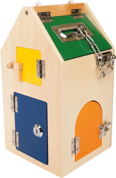 Το κινητικό σπιτάκι με κλειδαριές small foot είναι ένα έξυπνο διδακτικό παιχνίδι που επιτρέπει με ασφάλεια στα παιδιά από 3 ετών να εξερευνήσουν τον κόσμο των κλεισιμάτων και των μηχανικών στοιχείων. Κάθε πορτάκι κρύβει μια διαφορετική πρόκληση – από κλειδαριά τύπου U και κυλινδρική κλειδαριά, μέχρι διάφορες βίδες και μοχλούς, καθώς και μεντεσέδες και αλυσίδα ασφαλείας. Έτσι, αναπτύσσει φυσικά τον συντονισμό χεριού–ματιού, την υπομονή και τη συγκέντρωση.