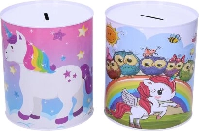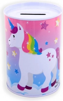 Ο μεταλλικός κουμπαράς με θέμα μονόκερο είναι όχι μόνο ένας πρακτικός βοηθός για την αποταμίευση, αλλά και ένα όμορφο διακοσμητικό στοιχείο για το παιδικό δωμάτιο. Οι πολύχρωμες απεικονίσεις μονόκερων, ουράνιων τόξων και αστεριών θα χαροποιήσουν κάθε παιδί.