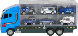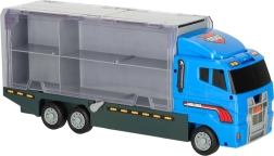 Το μεγάλο μπλε φορτηγό συνδυάζει λειτουργία αποθήκευσης με δυνατότητα παιχνιδιού. Επιτρέπει τη μεταφορά έως και 14 μικρών μεταλλικών αυτοκινήτων, τα οποία περιλαμβάνονται στη συσκευασία. Τα αυτοκινητάκια μιμούνται ρεαλιστικά πραγματικά αστυνομικά και οχήματα έκτακτης ανάγκης. Το φορτηγό έχει δύο πλευρές με διάφανες πόρτες και ασφαλείς κλειδαριές, διασφαλίζοντας ότι τα αυτοκινητάκια δεν πέφτουν κατά την κίνηση. Περιλαμβάνει επίσης εκτοξευτή αυτοκινήτων στο μπροστινό μέρος, που προσθέτει μια επιπλέον διάσταση στο παιχνίδι.