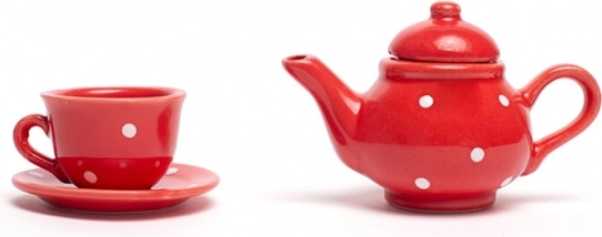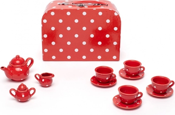 Οργανώστε το ιδανικό παιδικό τσάι με αυτό το μαγικό σετ σε κόκκινο χρώμα με λευκές πουά κουκκίδες. Το σετ περιλαμβάνει όλα όσα χρειάζονται οι μικροί οικοδεσπότες – τσάιέρα, 4 φλιτζάνια με πιατάκια, ζαχαριέρα και γαλατιέρα. Όλα αποθηκεύονται εύκολα μετά το παιχνίδι σε μια ανθεκτική βαλιτσούλα, ώστε το σετ να είναι ιδανικό και για ταξίδια. Κατασκευασμένο από ποιοτικά υλικά και σύμφωνα με τις ευρωπαϊκές προδιαγραφές ασφαλείας.