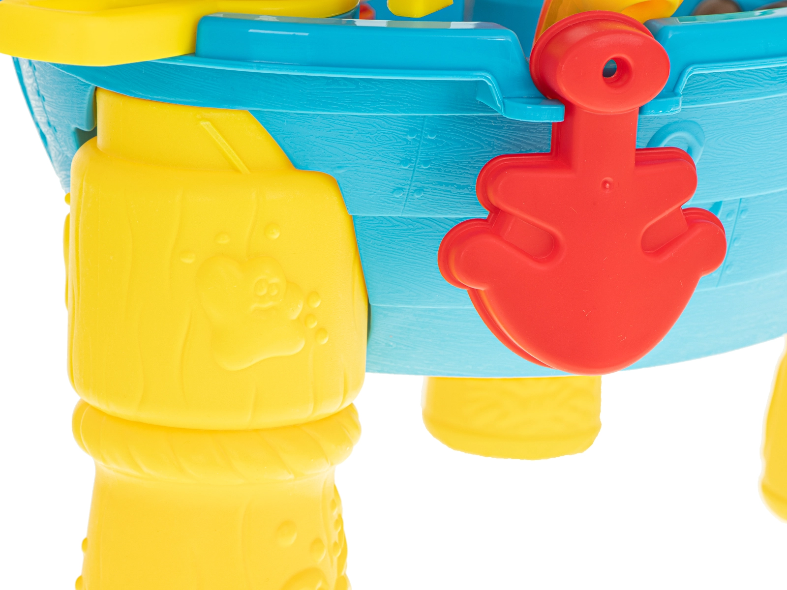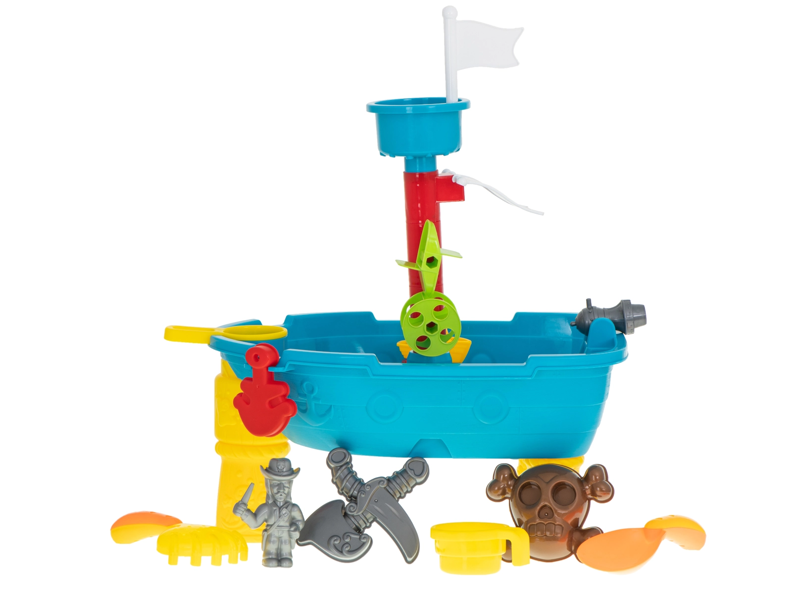 Με το πειρατικό παιχνιδότραπέζι πλοίου, που συνδυάζει παιχνίδι με νερό και άμμο, τα παιδιά ξεκινούν για ατελείωτες περιπέτειες. Με αυτό το πολυλειτουργικό τραπεζάκι ανοίγεται μπροστά τους ένας κόσμος γεμάτος υδάτινα παιχνίδια και κατασκευές από άμμο.