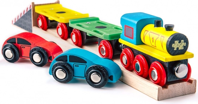 Ανακαλύψτε ένα πολύχρωμο ξύλινο σετ που συνδυάζει φορτηγό τρένο, 2 αυτοκινητάκια και ράγες σε ένα διασκεδαστικό παιχνίδι. Συμβατό με τις περισσότερες ξύλινες σιδηροτροχιές της αγοράς, κατασκευασμένο από ποιοτικά φυσικά υλικά και συμμορφώνεται με τις ευρωπαϊκές προδιαγραφές ασφαλείας. Ιδανικό για τον ανάπτυξη φαντασίας, λεπτής κινητικότητας και συντονισμού για παιδιά από 3 ετών.