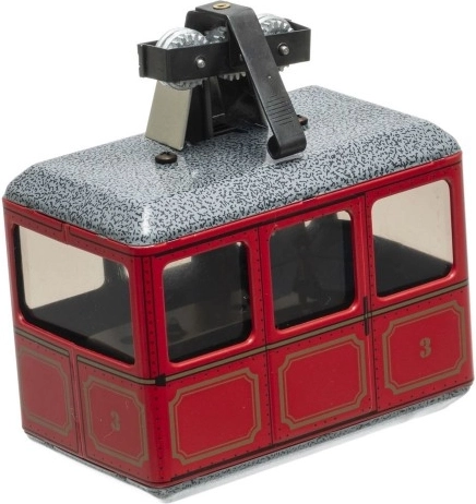 Το μεταλλικό αυτό μοντέλο τελεφερίκ είναι τέλειο για μικρούς και μεγάλους φίλους των τρένων και των τελεφερίκ. Ο σχεδιασμός εμπνευσμένος από το vintage στυλ προσφέρει όχι μόνο παιχνίδι, αλλά και ένα όμορφο συλλεκτικό κομμάτι για έκθεση. Η εγκατάσταση του τελεφερίκ είναι εύκολη: αρκεί να στερεώσετε ένα σχοινί ανάμεσα σε δύο σημεία, με τη μέγιστη επιτρεπόμενη υψομετρική διαφορά στα 0,5 m. Για το κούρδισμα χρησιμοποιήστε το κλειδί που βρίσκεται στο δάπεδο του τελεφερίκ, ενώ είναι σημαντικό το φρένο να βρίσκεται στη θέση '0' κατά το κούρδισμα.