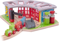Η ξύλινη αποθήκη είναι σχεδιασμένη για πέντε διαφορετικά τρενάκια και περιλαμβάνει λειτουργική περιστροφική πλατφόρμα, που επιτρέπει την εύκολη μετακίνηση των τρένων μεταξύ των επιμέρους γκαράζ. Το σύστημα διαθέτει ανοιγόμενες πόρτες και αντλητικό σταθμό, συμβάλλοντας σε μια ρεαλιστική εμπειρία παιχνιδιού.