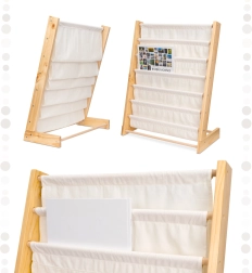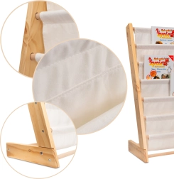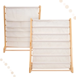 Ένα κομψό και πρακτικό ξύλινο ράφι για βιβλία που εντάσσεται εύκολα σε κάθε παιδικό δωμάτιο. Προσφέρει έως 6 υφασμάτινα ράφια, που παρέχουν άφθονο χώρο για βιβλία, βιβλία ζωγραφικής και άλλες ανάγκες των παιδιών σας. Το ύψος του ραφιού είναι 76,5 cm, γεγονός που επιτρέπει στο παιδί να φτάνει χωρίς δυσκολία σε όλα τα ράφια.