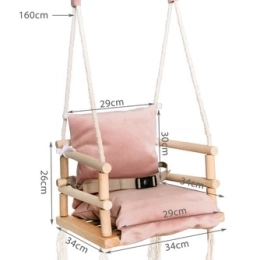 Προσεκτικά λειασμένα ξύλινα μέρη με στρογγυλεμένες άκρες, ανθεκτικά σχοινιά και ζώνη ασφαλείας για ήρεμο κούνημα.