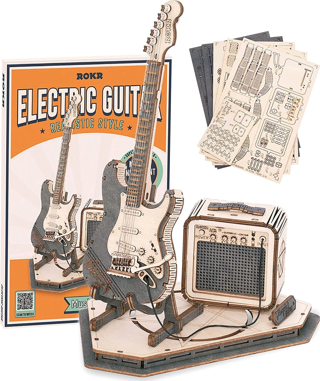 Το σετ περιλαμβάνει 140 κομμάτια με χαμηλή δυσκολία, ιδανικό επομένως για αρχάριους και μεγαλύτερα παιδιά. Χάρη στις σαφείς οδηγίες θα συναρμολογήσετε την κιθάρα σε περίπου 1,5 ώρα. Το αποτέλεσμα είναι ένα ρεαλιστικό μοντέλο ηλεκτρικής κιθάρας με ενισχυτή, ένα υπέροχο δώρο για τους φίλους της μουσικής.