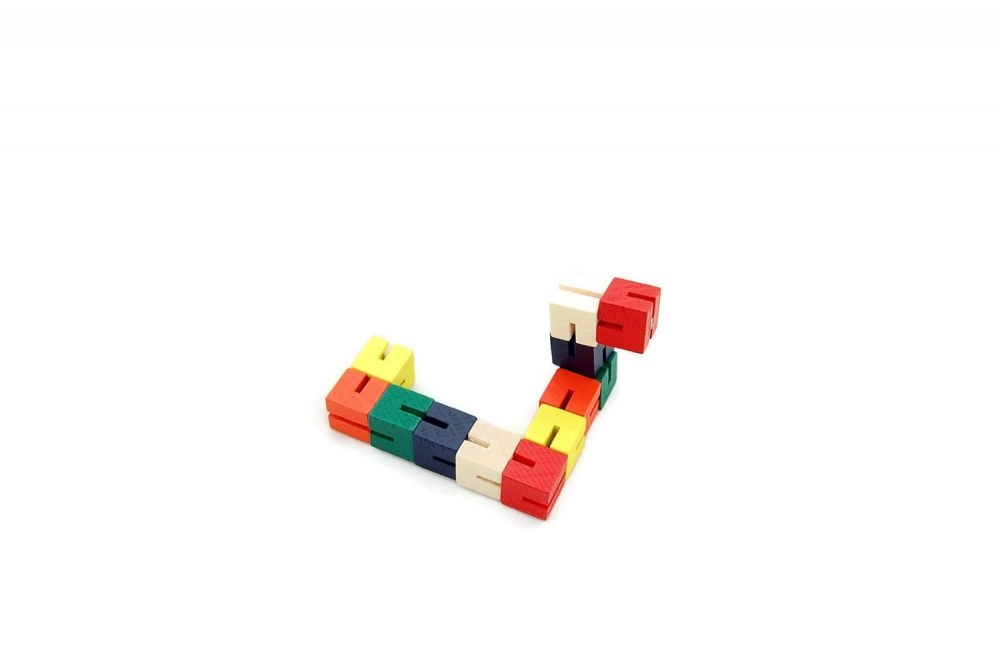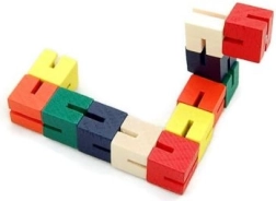 Ο πολύχρωμος ξύλινος γρίφος σε σχήμα φιδιού προσφέρει αναρίθμητους τρόπους για να εξερευνήσουν τα παιδιά τη δημιουργικότητά τους. Με την περιστροφή και την αναστροφή των επιμέρους τμημάτων αναπτύσσουν επιδεξιότητα και λεπτή κινητικότητα. Το παιχνίδι είναι ιδανικό και για το ταξίδι· χάρη στο τσέπης μέγεθός του τα παιδιά μπορούν να το έχουν πάντα μαζί τους. Τα ξύλινα τουβλάκια είναι σταθερά ενωμένα με ελαστικό κορδόνι, κάτι που εγγυάται αντοχή και ασφάλεια.