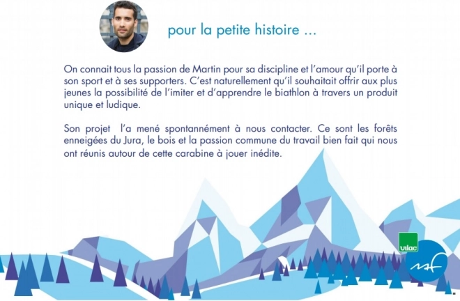 Ανακαλύψτε τη μαγεία του βιοathlon με το βιοαθλητικό τουφέκι του Martin Fourcade. Αυτό το παιχνίδι έχει σχεδιαστεί για να ενθουσιάζει τους νεαρούς αθλητές που δεν φοβούνται το κρύο και το χιόνι. Ο βιοathlon είναι στην Τσεχία εξίσου δημοφιλής με το χόκεϊ και το σκι, και αυτή η μικρού διαμετρήματος «καραμπίνα» προσφέρει μια μοναδική ευκαιρία εξάσκησης για τους μικρούς θαυμαστές αυτού του αθλήματος.
