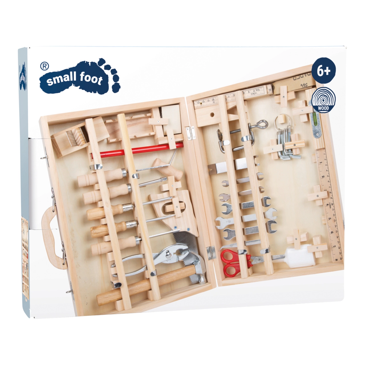 Η πρακτική και ανθεκτική βαλίτσα με εργαλεία Deluxe από τη small foot είναι ιδανική για παιδιά που τους αρέσει να ανακαλύπτουν τον κόσμο των επισκευών και της δημιουργίας. Όλα τα εργαλεία έχουν καθορισμένες θέσεις και είναι στερεωμένα ώστε να παραμένουν στη θέση τους ακόμη και κατά τη μεταφορά. Η ποιοτική κατασκευή από ξύλο, μέταλλο και πλαστικό εξασφαλίζει μεγάλη αντοχή και αυθεντική αίσθηση στη χρήση των εργαλείων.