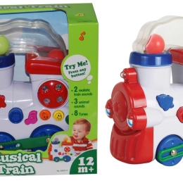 Αυτό το παιχνιδιάρικο μουσικό τρενάκι προσφέρει στα παιδιά άφθονα ερεθίσματα και διασκέδαση. Ο απλός χειρισμός μέσω του κουμπιού σε σχήμα αστεριού ενεργοποιεί την κίνηση του τρένου, κατά την οποία μπαλόνια πετάνε από την καμινάδα. Οι ρεαλιστικοί ήχοι τρένου, τα πολύχρωμα φώτα και οι ζωηρές μελωδίες αναπτύσσουν φυσικά την ακοή, την όραση και τη λεπτή κινητικότητα.