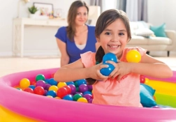 Οι μπάλες διατίθενται σε διάφορα χρώματα, όπως κόκκινο, μπλε, πράσινο, κίτρινο, πορτοκαλί και μωβ, που υποστηρίζουν την εκμάθηση των χρωμάτων και το παιχνίδι.