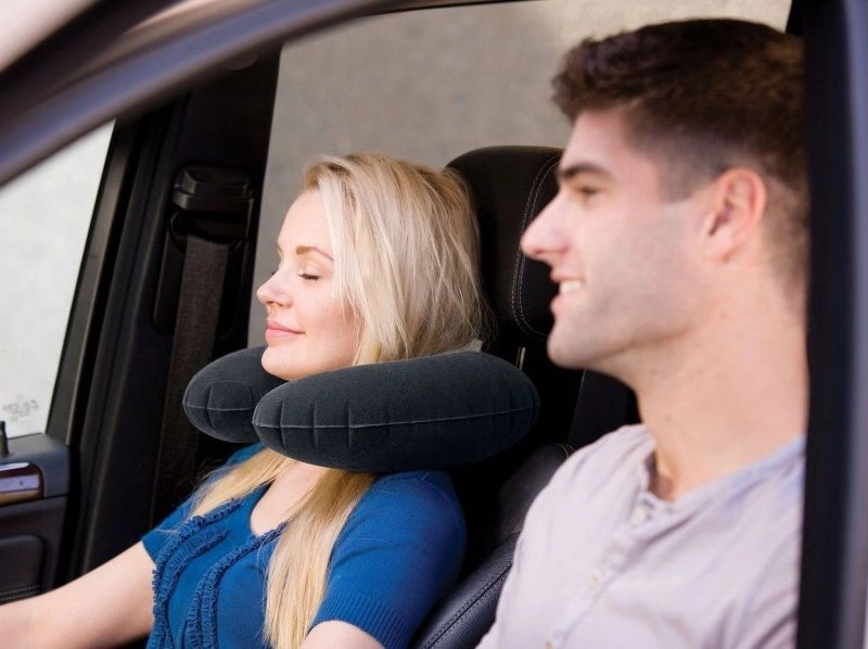 Το σχήμα U κρατά το κεφάλι σε σταθερή θέση και βοηθά στην πρόληψη πόνου και δυσκαμψίας του αυχένα κατά το παρατεταμένο κάθισμα σε αεροπλάνο, αυτοκίνητο ή τρένο.