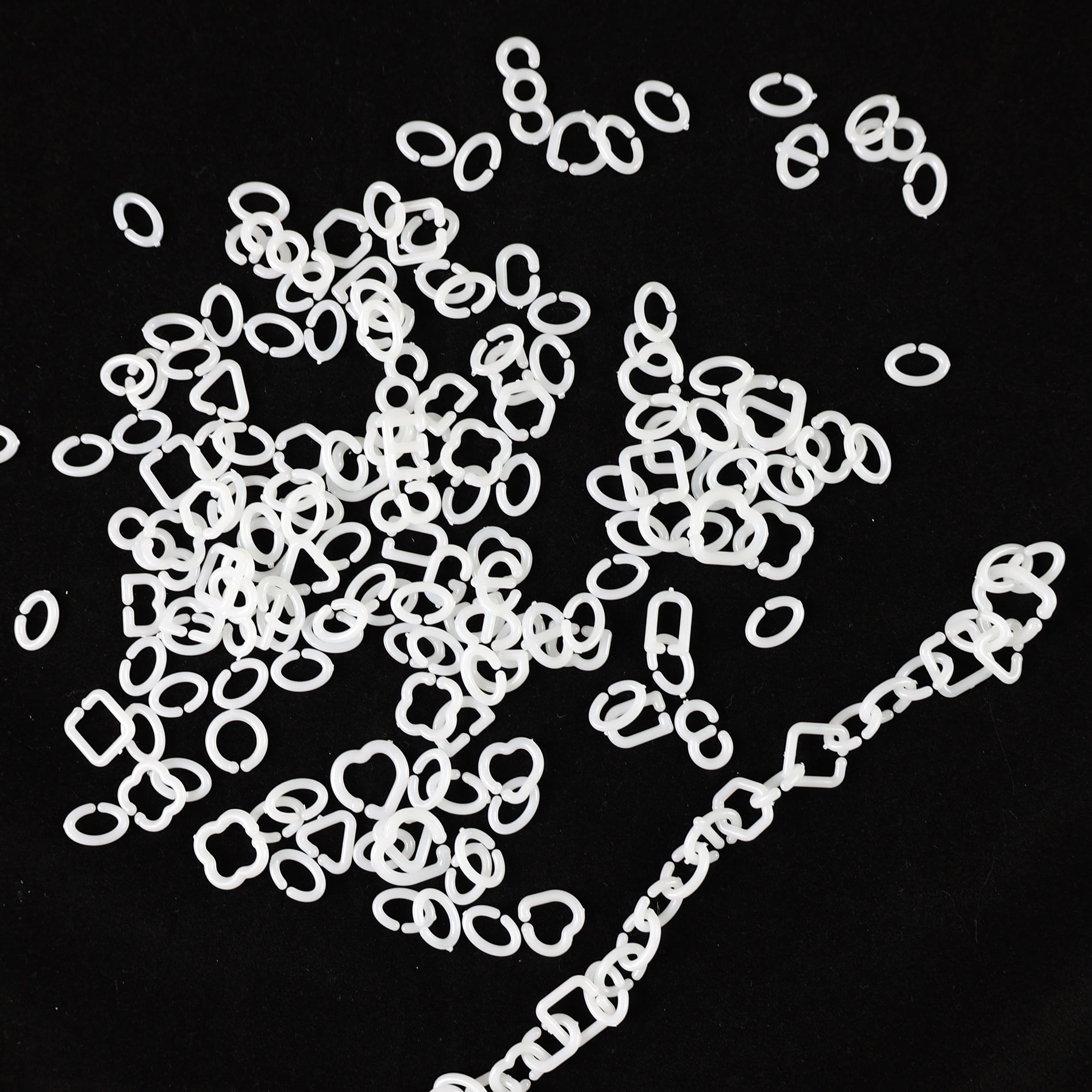 Η συσκευασία περιλαμβάνει 150 τεμάχια σε πρακτικό μίγμα σχημάτων, με τα οποία μπορείτε να δημιουργήσετε αλυσίδες, βραχιολάκια ή διασκεδαστικά σχέδια. Τα υλικά είναι ασφαλή και μη τοξικά, κατάλληλα για παιδιά και για επαναλαμβανόμενη χρήση.