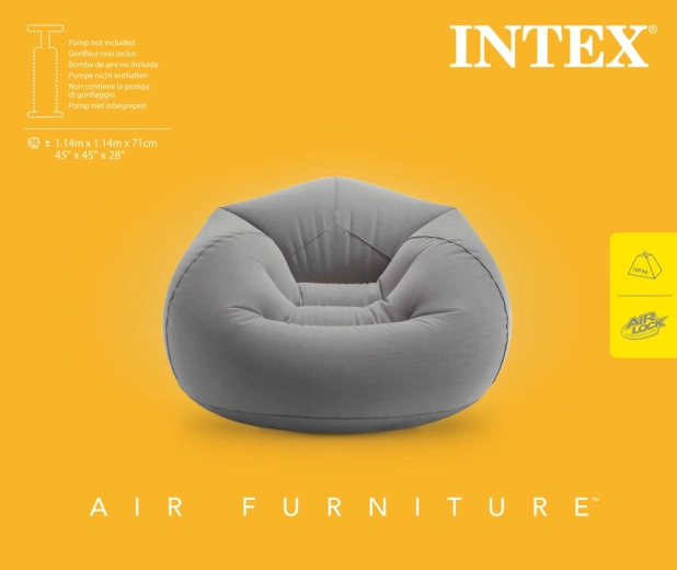 Χάρη στη φουσκωτή κατασκευή, είναι ιδανική για σαλόνι, φοιτητικό δωμάτιο, εξοχικό ή και γραφείο σε ζώνη χαλάρωσης. Φουσκώνει και ξεφουσκώνει εύκολα, ώστε να τη μεταφέρετε και να την αποθηκεύετε χωρίς κόπο. Η γκρι απόχρωση ταιριάζει στα περισσότερα διακοσμητικά στυλ και αναδεικνύει τις καθαρές γραμμές της σύγχρονης διαβίωσης.