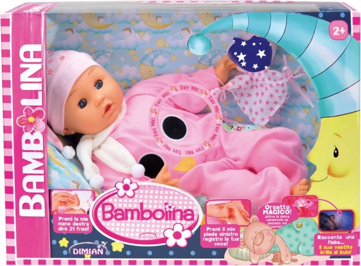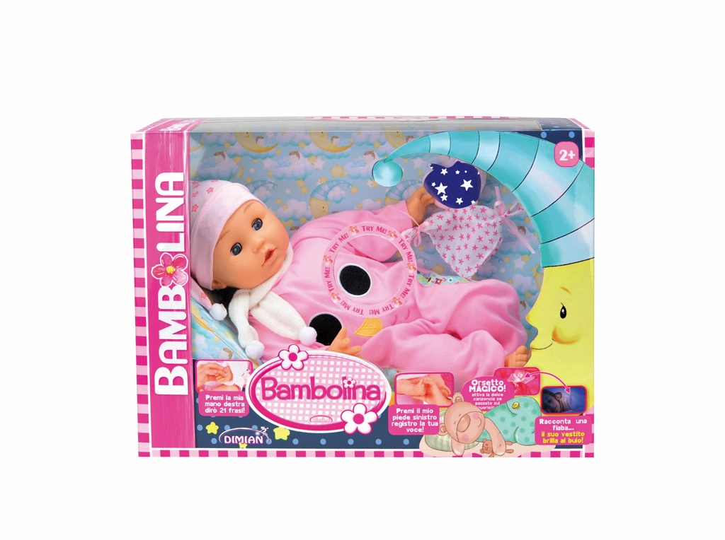 Η κούκλα Bambolina Jasmine προσφέρει στα παιδιά διαδραστική διασκέδαση και υποστηρίζει την ανάπτυξη λεξιλογίου και κοινωνικών δεξιοτήτων. Με το πάτημα στην κοιλίτσα αρχίζει να μιλά στα τσέχικα και λέει γλυκές φράσεις, για παράδειγμα: «Μαμά, σ’ αγαπώ.» Χάρη στην ρεαλιστική εμφάνιση και τα απαλά ρούχα της, τα παιδιά την αγαπούν αμέσως.