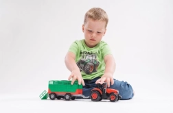 Αυτό το λεπτομερώς κατασκευασμένο πλαστικό τρακτέρ Zetor με καρότσα είναι εξαιρετική επιλογή για παιδιά από 3 ετών. Χάρη στον μηχανισμό αδράνειας ξεκινά εύκολα, τα κουμπιά ενεργοποιούν ρεαλιστικούς ήχους κινητήρα και φώτα για πιο αυθεντικό παιχνίδι. Το αποσπώμενο ρυμουλκούμενο επιτρέπει τη μεταφορά σανού, ζωάκιων ή άλλων φορτίων και καλλιεργεί τη φαντασία των παιδιών σε αγροτικά σενάρια.