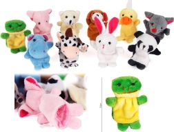 Στη συσκευασία θα βρείτε αγαπημένα ζωάκια: ιπποπόταμο, ποντικάκι, σκυλάκι, αρκουδάκι, βατραχάκι, ελεφαντάκι, αγελαδίτσα, πάντα, κουνελάκι και παπάκι. Χάρη στο συμπαγές μέγεθος, οι κούκλες εφαρμόζουν εύκολα στο δάχτυλο και είναι ιδανικές για το ταξίδι, τον παιδικό σταθμό και το σπίτι.