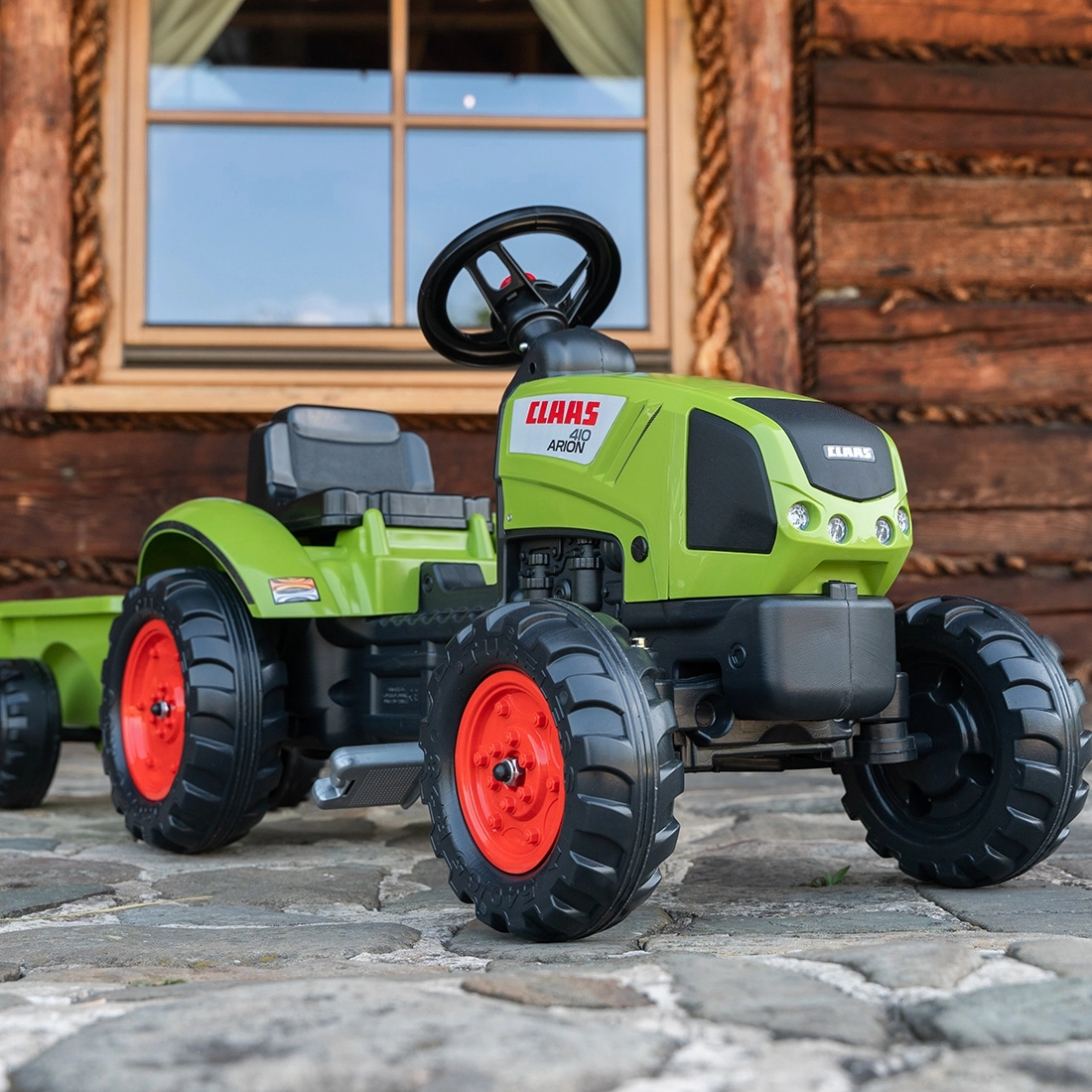 Το τρακτέρ διαθέτει αποσπώμενο ρυμουλκούμενο, που επιτρέπει στα παιδιά να φορτώνουν και να μεταφέρουν παιχνίδια πιο εύκολα.