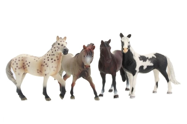 Τέσσερις πλαστικές φιγούρες αλόγων, καθεμία με διαφορετικό χρωματισμό, επιτρέποντας στα παιδιά να δημιουργούν ποικίλες σκηνές και ιστορίες.